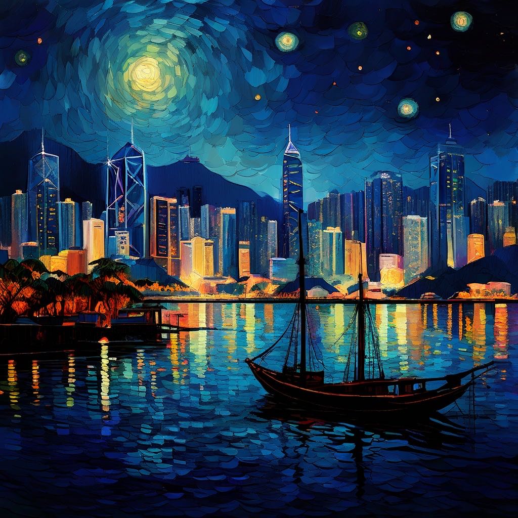 Embrace the stunning night view of Hong Kongs Victoria Harbor, pay homage to Van Goghs "Starry Night", and let the transformative power of art resonate deep within you. Whether through immersive tributes, art products that inspire creativity, exploring art history, participating in workshops, or delving into the intersection of art and technology, you have incredible opportunities to unleash your imagination and expand your artistic skills . Deepen your appreciation for the infinite beauty and meaning of art. Let the energy of the Victoria Harbor landscape inspire your creativity as you embark on a journey that celebrates the extraordinary power of art in an ever-evolving world. Through cultural exchange, art becomes a universal language that unites and enriches us all.
